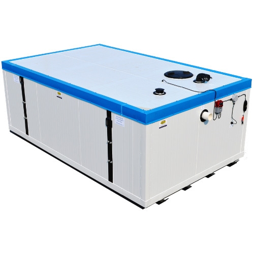 Insulated & heated chemical, sewage, and water holding tanks for aboveground outdoor use in a variety of sizes provide freeze protection of minimum temperature maintenance. Specially designed and manufactured for cold weather climates, these tanks can be fitted with level alarms, pumps, and pump control devices to fit your unique applications. Alternatively, see Power Blankets for additional tank heating options for your pre-existing tanks & totes.